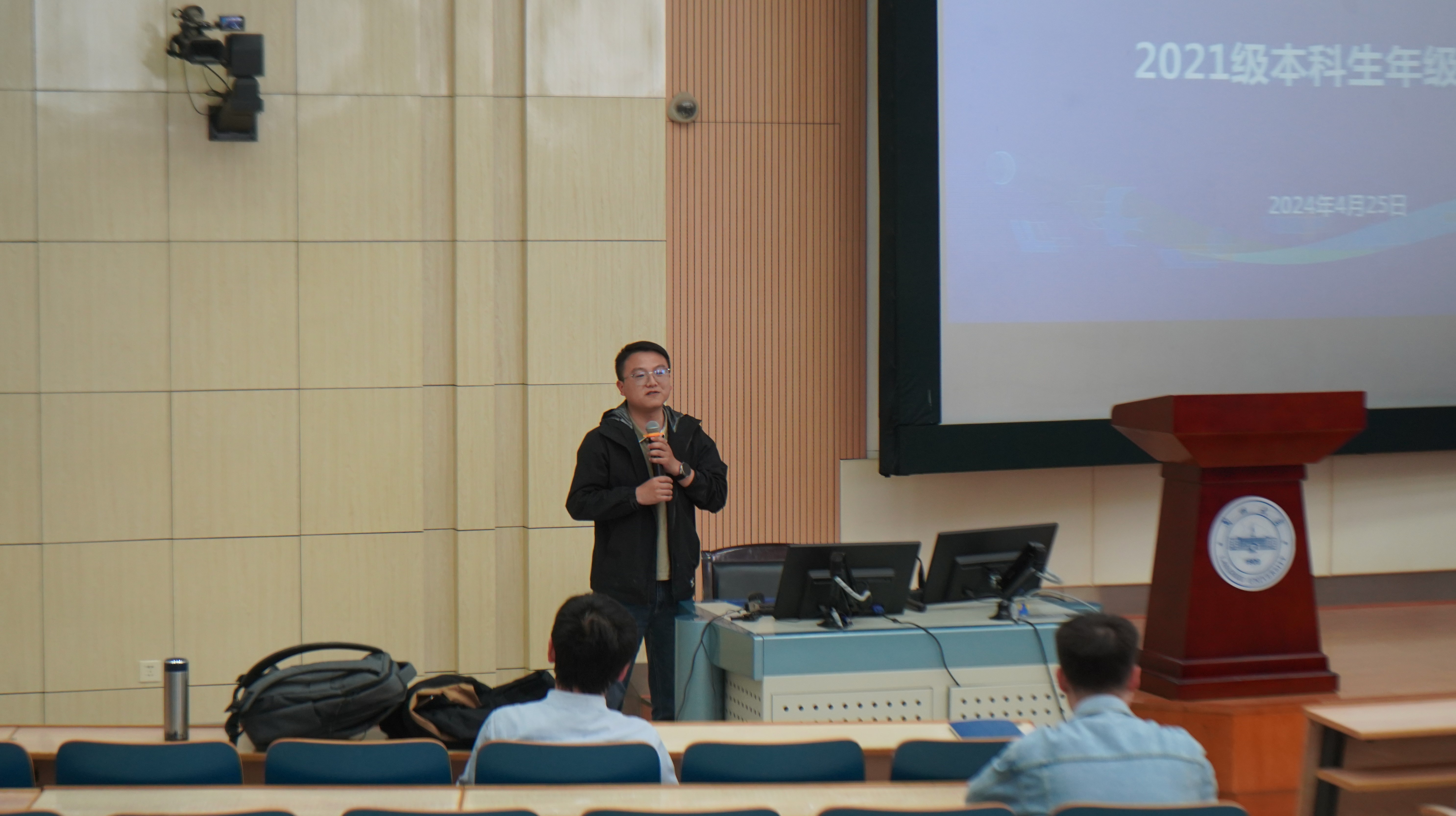 4月25日下午,学院在天山堂C301召开2021级本科生年级大会,学院副经理、本科生班主任王建波,教学秘书范正焜和2021级全体本科生参加会议,会议由2021级本科生辅导员樊金雷主持。