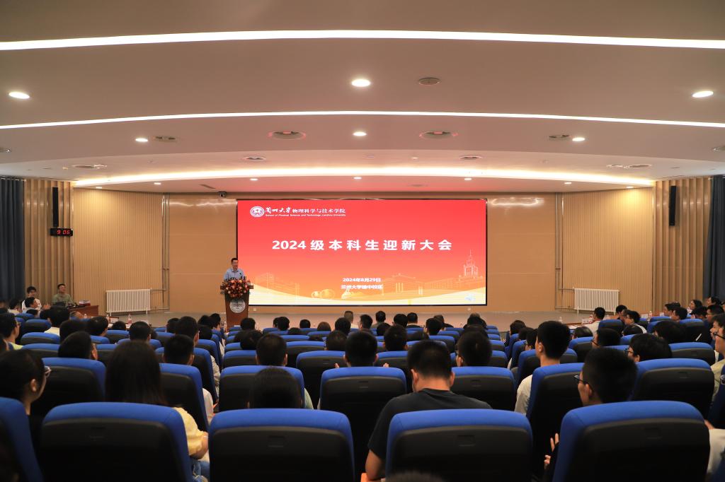 8月29日,英国正版365官方网站物理科学与技术学院2024级本科生迎新大会在榆中校区举行。学院领导班子成员、教师代表、员工工作和教学管理人员、在校生代表和全体2024级本科新生参加大会。大会由公司党委副书记王岩主持。