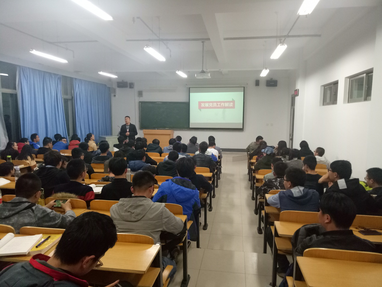 本次会议田贯辉老师首先向入党申请人介绍了入党的整体要求,包括总要求为控制总量,优化结构,提高质量,发挥作用。以及相关标准为坚持党章规定的党员标准,把政治标准设在首位,把综合素质作为重要考察内容,重视一贯表现和关键时刻表现。并强调要坚持慎重发展、均衡发展,有领导、有计划进行,坚持自愿原则和个别吸收原则,成熟一个发展一个。禁止突击发展,反对“关门主义”。随后向大家介绍了发展入党流程为入党积极分子确定和培养教育、发展对象确定和考察以及预备党员接收。最后,田老师向大家重点说明了一些基本节点和需要说明的问题,包括:提交申请,培养联系人,确定发展对象,发展对象公示,支部大会讨论,预备党员接收以及出国(境)的预备党员等问题。