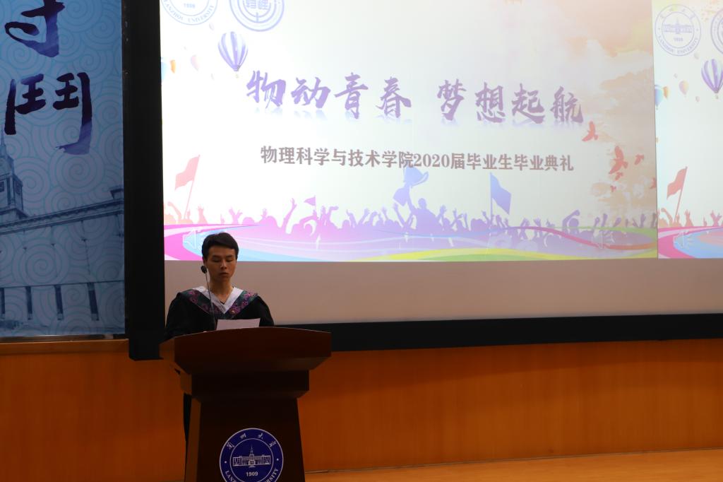 2016级物理学专业本科生余航、2017级凝聚态物理专业博士研究生李云霞分别代表本科生、研究生上台发言。他们结合自身在学期间的经历心得,向学院的教育培养、老师的教诲关切和同窗的帮助陪伴表示衷心的感谢。