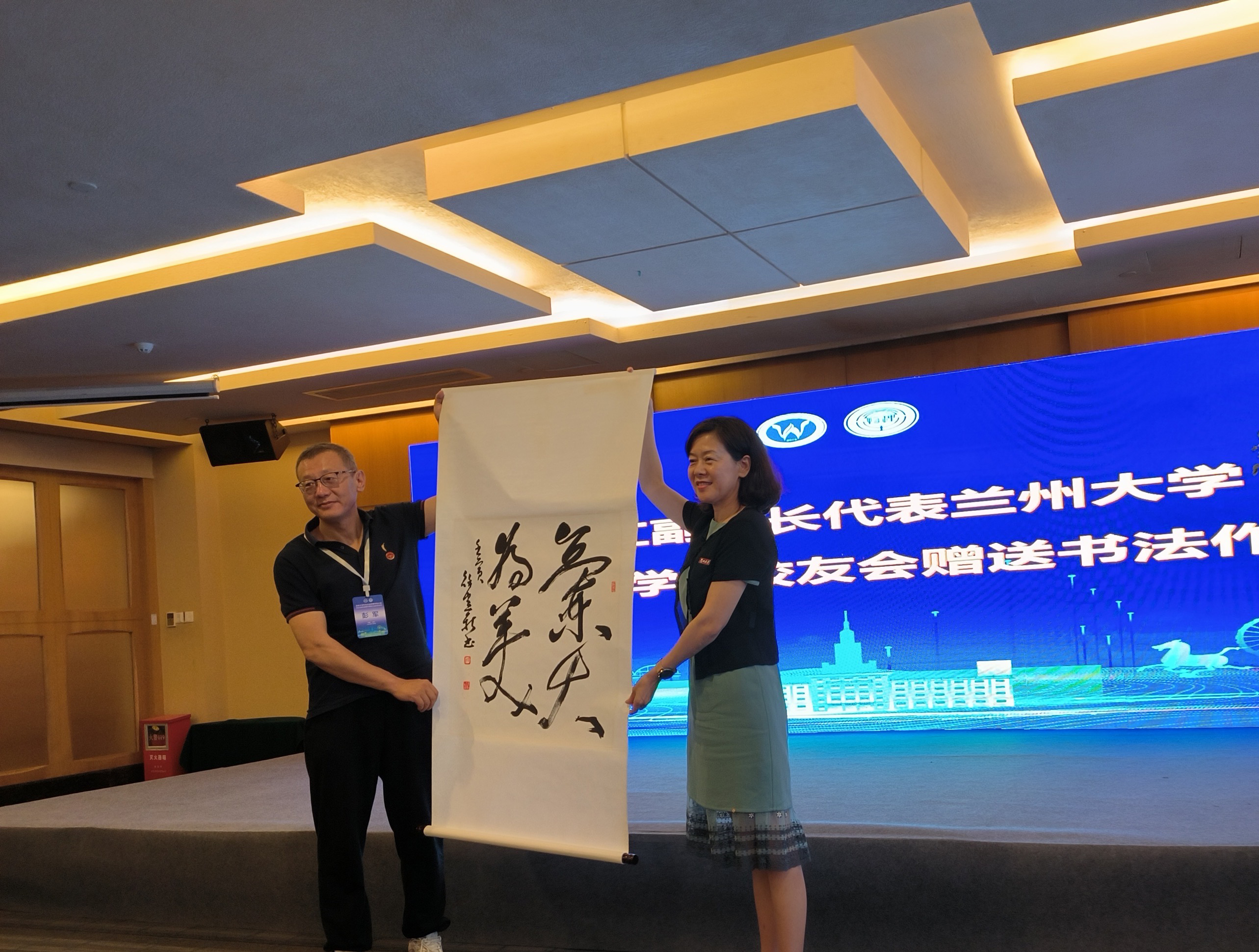 曹红副董事长代表英国正版365官方网站向英国上市公司官网365员工会赠送书法作品《兰大为美》。