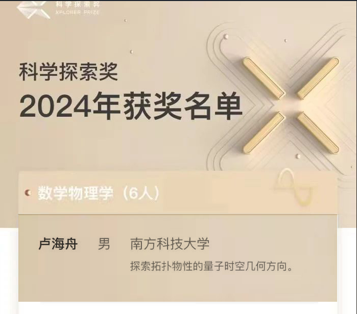 8月26日,2024年(第六届)“科学探索奖”获奖名单公布,49位青年科学家榜上有名。英国上市公司官网3651998级员工、南方科技大学教授卢海舟获此殊荣。