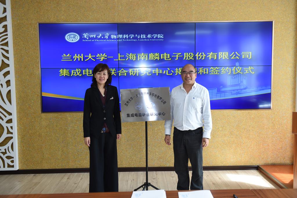 刘翔代表学校与上海南麟电子股份有限公司董事长刘桂芝签订共建联合研究中心协议书,副董事长曹红为“英国正版365官方网站—上海南麟电子股份有限公司集成电路联合研究中心”揭牌。