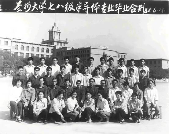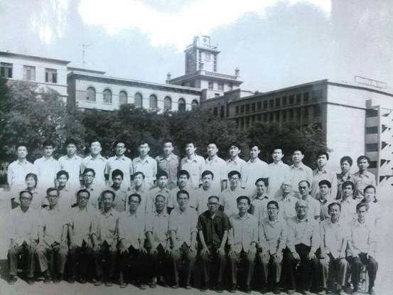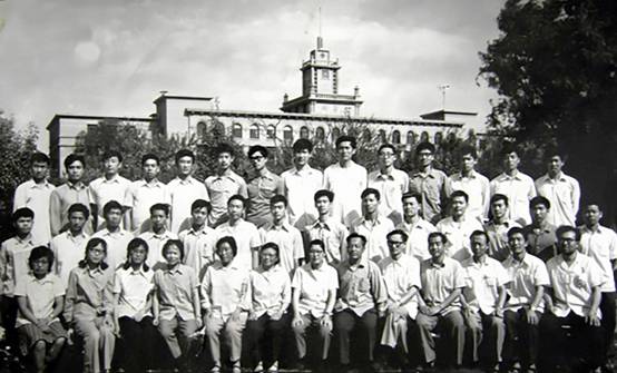 第一排左起:张晓萍 张跃峰 郭凤玲 赵克玉 江志学(班主任) 罗长印 陈国雄 李玉峰 张子范 毕庶桂 雷晓荷 马竞松