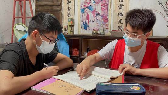青年是家庭的希望,是国家的未来,蒋义挥在完善自身修养的同时,也不忘协助同行者。在社区防疫工作期间,听闻辖区有一位困境儿童的妈妈生病住院,平时只有孩子一人在家,社区工作者每天去照看,蒋义挥主动购买学辅教材跟随工作人员来到他们家中,检查孩子学习情况,督促他及时预习新学期的内容,鼓励他为了自己内心的理想而努力奋进。蒋义挥认为:赠人玫瑰,手有余香,通过自己一点微薄的力量给别人带来前进的动力,同时也能够将志愿精神传递给新一代的青少年,让这个社会充满希望和美好。