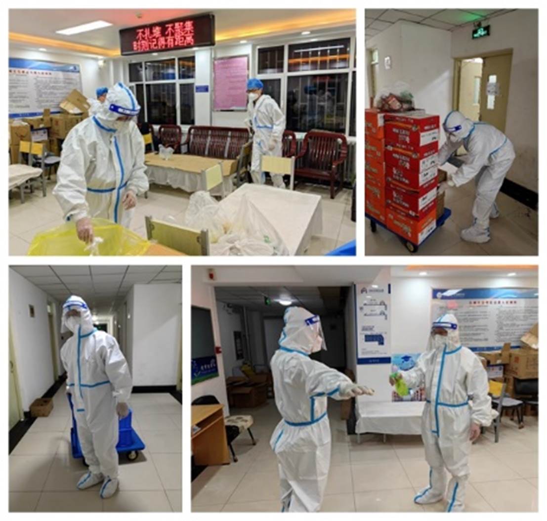 风雨见初心,抗“疫”勇担当。自封闭管理以来,学院领导身先士卒,靠前指挥,党委书记吴国军第一时间进驻校内,担任格致楼楼长,统筹学院和格致楼疫情防控各项事务,全面掌握在校师生情况,加强楼宇安全管理,安排部署精准防疫举措,推动学院教学科研等各项工作有序运行。经理刘翔统筹协调教师工作,第一时间调度指挥,迅速摸清校内外教师情况,建立滞留校内教师台账,掌握教师健康状况和居住地防疫要求,协调组织研究生导师积极参与疫情防控工作,推动学院教学科研等各项工作有序运行。学院教师迎难而上,勇毅担当,纷纷向“疫”而行,争做抗疫先锋,李云鹏老师主动投身格致楼和研究生10号楼宇疫情防控工作,全身心奋战在抗疫一线,青鸟老师带领物业保洁保安坚守校内,全力保证格致楼卫生环境和秩序,靳志文、李通老师先后担任理工楼楼长,协助楼内疫情防控和员工的生活保障工作。随着疫情形势的发展,党委副书记、副经理李星波、组织员李鹏君、李勇、张晓晓、肖恢芙老师毅然入校支援抗疫,李勇老师驻守格致楼,李鹏君、张晓晓老师参与校内志愿巡逻服务队,李星波、李云鹏和肖恢芙老师投身到研究生10号楼800余名员工的楼宇疫情防控工作中,协调核酸检测、搬运配送防疫物资、发放一日三餐、统计各类信息,做好员工思想工作和心理疏导。