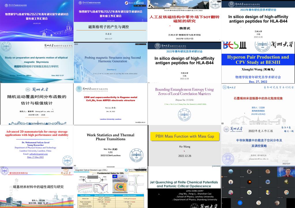 12月26-27日,物理科学与技术学院2022年青年研究员学术研讨会暨年度工作汇报会(以下简称“青研会”)在线上圆满举行。学院为深入贯彻落实二十大会议精神以及中央人才工作会议精神,促进青年人才交流合作,碰撞思想火花,激发创新活力,为青年人才成长营造良好氛围和交流合作平台,以“砥砺笃行二十大,勇毅奋斗新时代”为主题,通过口头报告、自由交流和座谈等形式成功举办了青研会。