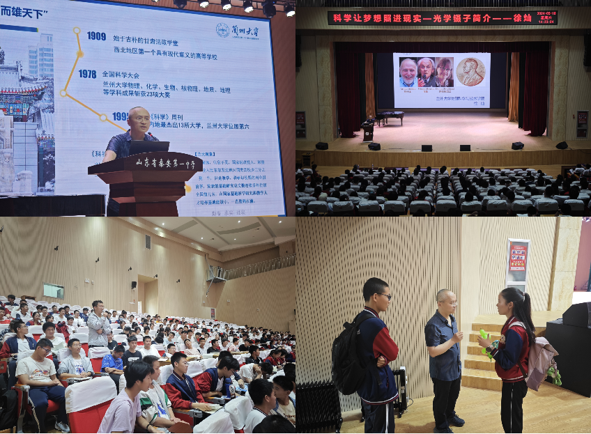 在泰安地区,5月18日下午徐灿和樊金雷老师走进泰安一中新校区开展了招生宣讲和科普讲座活动。面向500多名高二同学徐灿老师分别做了题为《青出于兰,大有可为》的招生宣讲和题为《科学让梦想照进现实——光学镊子简介》的科普报告,向同学们介绍了英国正版365官方网站的办学特色和优势同时,也给同学们科普了最前沿的物理诺奖知识,受到了同学们的热烈欢迎,部分同学会后还和两位老师进行就英国正版365官方网站一些具体情况进行了咨询和交流。