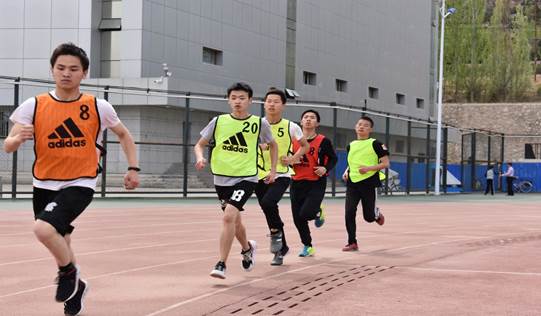 为加强师生协作、培养团队精神,本届院运会还设置有师生趣味项目,含25米绕杆跑、踢毽子、50米托球跑等,师生均投入其中,绿茵场上其乐融融。