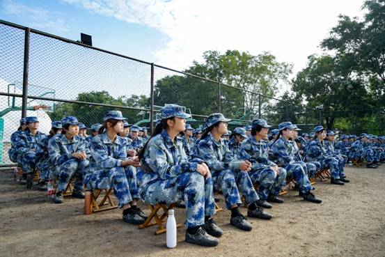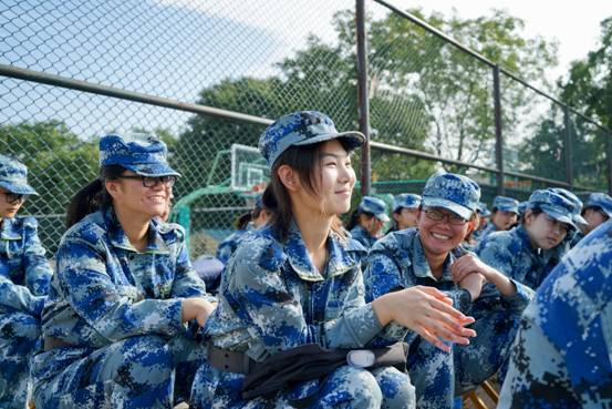 军训无疑是辛苦的。在高强度的训练之后,同学们获得了短暂的休息时光。哨声过后,所有人都放松了下来。这时不再有压力和劳苦,但同学们仍然整齐地坐着,遵守纪律,因为在军营,没有任何可供自由散漫的机会。