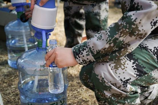 二营五连的军训服务点。这里提供矿泉水、热水、纸巾以及急救药品。这里有最负责任的老师、学长学姐们,休息之时与他们聊聊天也是不错的选择。