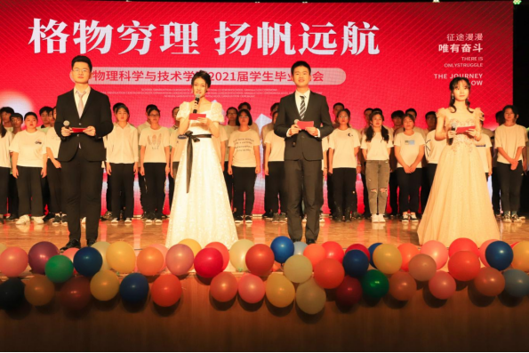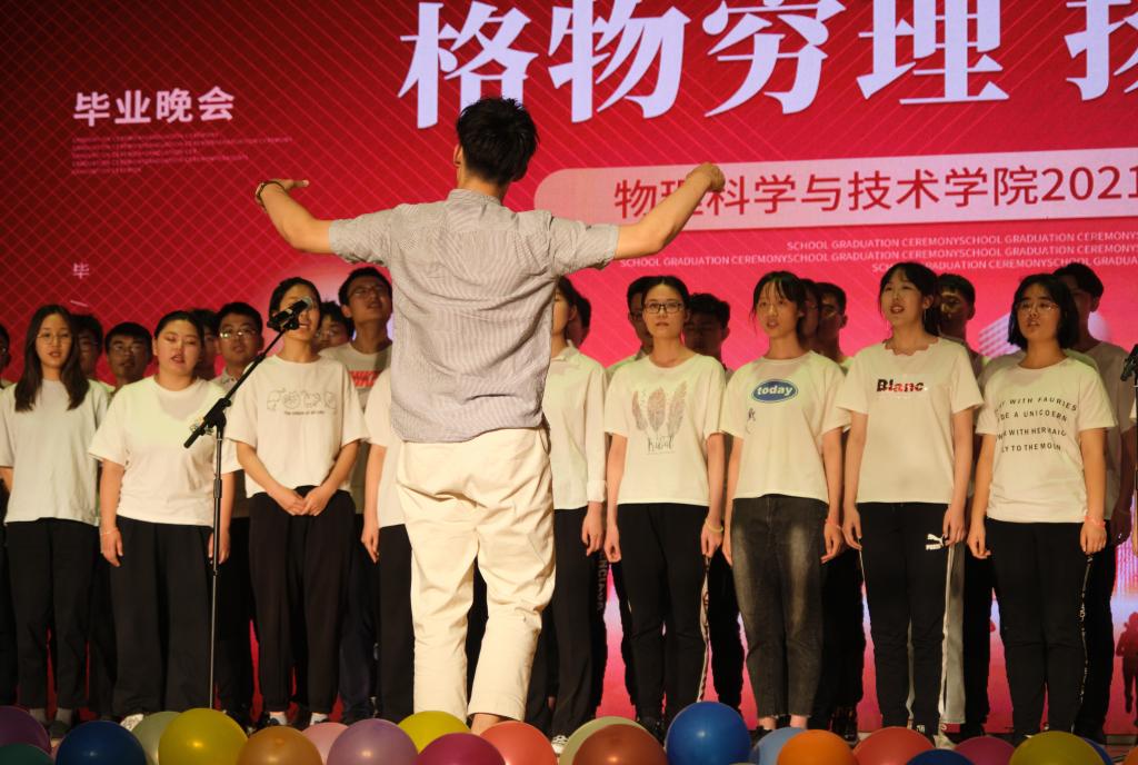 金城六月天,学子毕业时。6月19日,物理科学与技术学院2021届员工毕业晚会在榆中校区芝兰园三楼礼堂精彩上演。公司党政班子成员、教师代表及学院2021届全体毕业生共计400余人欢聚一堂、观看演出。晚会以“格物穷理·扬帆远航”为主题,分“春之歌”、“秋之歌”、“夏之歌”、“冬之歌”四个部分,融汇歌舞、朗诵、合唱等多种艺术形式,集合古典、现代、美声、流行等众多元素于一体,内容丰富多彩,晚会现场气氛热烈、掌声雷动。