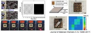 摘要:Wearable systems consisted of conformable and lightweight biomedical/strain sensors, power sources, and wireless modules have broad application potentials in human motion monitoring, medical, human-machine interface, safety, and soft-robotics. Our research in this area focuses on combination of conductive nanofibers/polymers and soft scaffold materials (such as elastomers and hydrogels) to design multi-component and multi-functional composite materials. In this talk, I presentour recent workon soft, spongy, and conductive materials as highly sensitive strain/pressure sensors for wearable human motion monitoring. Three-dimensional (3D) conductive sponge is assembled by freeze-drying of shortened electrospun nanofibers of polyacrylonitrile (PAN), polyimide (PI), and carbon. The sponge composed of these electrospun nanofibers is ultralight with hierarchical pores; under compressive strain, the resistance change of the 3D conductive sponge shows highsensitivity and stability over a wide range of compressive strain. Highly flexible and compressible conductive sponge is also prepared by one-step dip coating the commercial melamine sponge (MS) in an aqueous dispersion of poly(3,4-ethylenedioxythiophene):poly(styrenesulfonate) (PEDOT:PSS). Due to the interconnected porous structure of MS, the conductive PEDOT:PSS@MS has high compressibility and stable piezoresistive response at the compressive strain up to 80%, as well as good reproducibility over 1000 cycles. Versatile pressure sensors fabricated using these conductive sponges are attached to the different parts of human body; the capabilities of these devices to detect a variety of human motions including speaking, finger bending, elbow bending, and walking are evaluated. Furthermore, prototype tactile sensory array based on these pressure sensors is demonstrated.