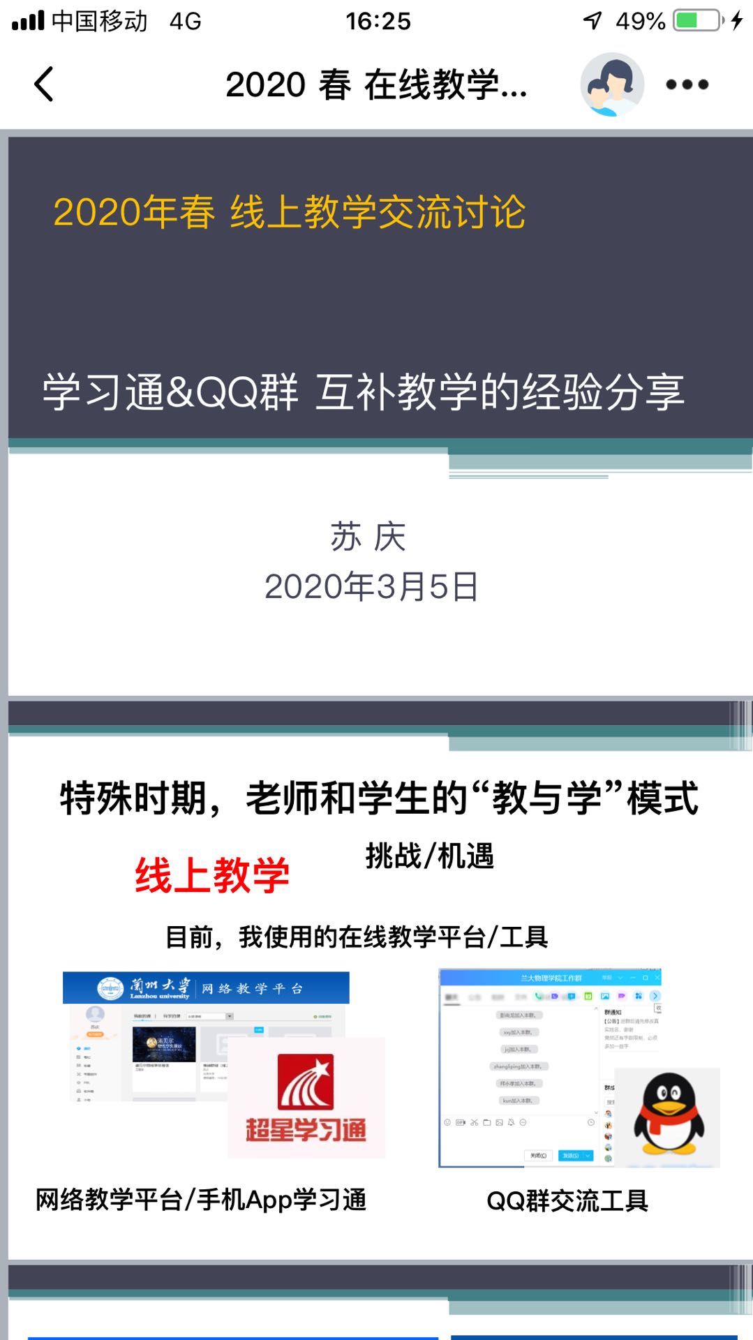 公司邀请大学物理教学教研室苏庆老师利用QQ直播平台主讲了“学习通&QQ群 互补教学的经验分享”线上直播培训。苏老师从学习通和QQ群各自的优缺点出发,就创建网上课程、发布课程内容、员工线上互动、课堂提问及画面切换、连麦互动、在线学情监控、引用平台资源等方面详细讲解了如何利用QQ群交流工具开展网络教学活动,帮助教师在较短的时间内掌握线上课程建设方法并对QQ群交流平台整体结构及功能有了较深入的理解,对在疫情防控期间如何更好地开展线上教学有了更清晰的思路。现场老师通过在线实时互动的方式积极参与、踊跃发言,并针对线上教学遇到的技术困难与问题同苏庆老师进行讨论交流。