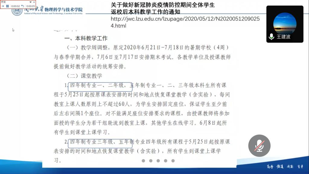会上,王建波介绍了学校返校复学工作总体情况,详细通报了学校《关于做好新冠肺炎疫情防控期间全体员工返校后本科教学工作的通知》的相关精神,对员工返校后课程安排调整、线上线下教学衔接、课堂教学组织管理、上课期间防疫要求等相关工作进行了周密安排。他指出,员工返校复课工作是学院当前最重要、最紧迫的头等大事,希望各位教师扎实做好各教学环节的准备工作,严格遵守学校各项工作时间、标准要求,做好线上线下教学工作衔接,保证疫情期间教学工作平稳有序进行。
