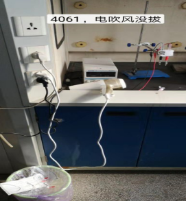 电吹风用完插头未拔,大量试剂瓶没及时处理 |