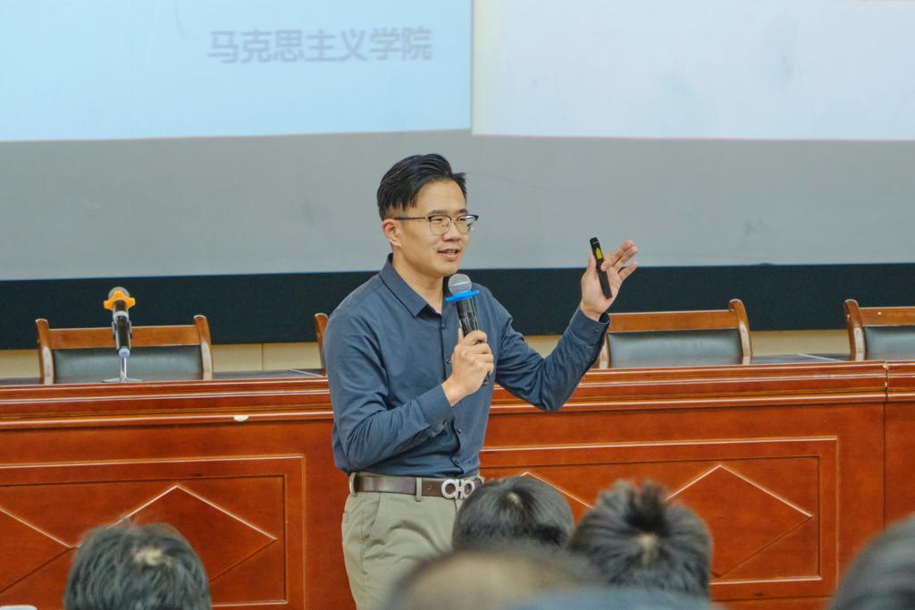 讲座中,顾超老师以“坚定历史自信,强化使命责任”为主题,首先从时间、地点、参会人员、主要议程等角度介绍了十九届六中全会召开概况,对“什么是党的最高权力机构”“什么是中央全会”等问题进行了讲解;从《关于党的若干历史问题的决议》《关于建国以来党的若干历史问题的决议》的背景和内涵出发,通过一系列数字着重介绍了《中共中央关于党的百年奋斗成就和历史经验的决议》的主要内容;就“如何看待历史”这一问题与同学展开互动交流,并结合相关实例,告诫同学们必须要秉持唯物史观,辩证地看待历史问题。
