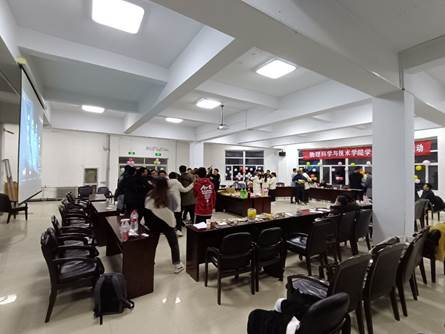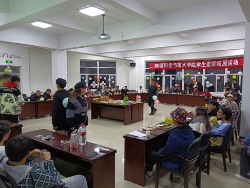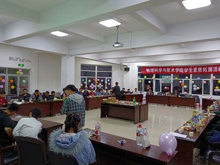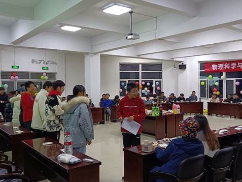 2021年12月4日晚7点,物理科学与技术学院在办公楼二楼会议厅开展了团学组织联谊晚会暨员工素质拓展活动。