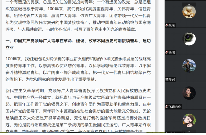 陈俊儒重点讲述了100年来,中国共产党如何带领广大青年接续奋斗、建功立业,让同学们感悟党领导中国青年运动的光辉历程以及新时代,广大青年如何续写中国青年运动新篇章。