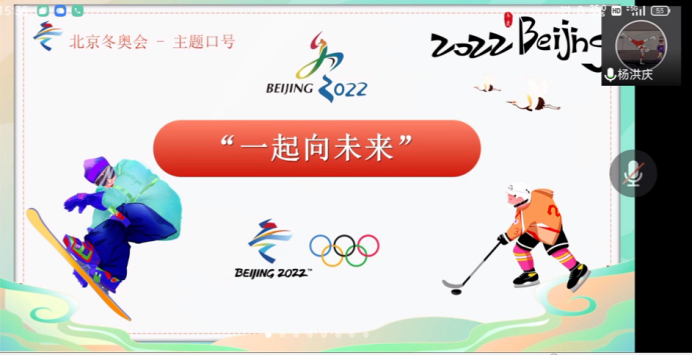 杨洪庆同学从北京冬奥会中的“中国精神”、习总书记给冰雪健儿的回信、北京冬奥会、冬残奥会表彰大会等几个方面展开讲述。最后以北京冬奥会口号“一起向未来”点明主题,激励同学们要紧跟时代步伐,做时代的开拓者。