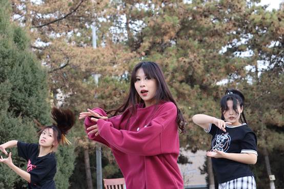 一大看点是舞蹈。看那舞者火红的发丝随动作飞扬,舞步青春动感富有节拍,手臂一张一合间是生命张力的表达;再看,有舞者头发高高竖起,发辫融合了轻逸的灰与耀眼的蓝,使张扬活力的舞蹈带来的视觉冲击更甚。每一位舞者都热情万分,与搭档配合默契,尽显团队之风。舞蹈直接点燃了榆中8°C的气温,寒冷在这面前似乎都不值一提,场上气氛被热舞烘托到了极致,观众们的呐喊声更是此起彼伏。