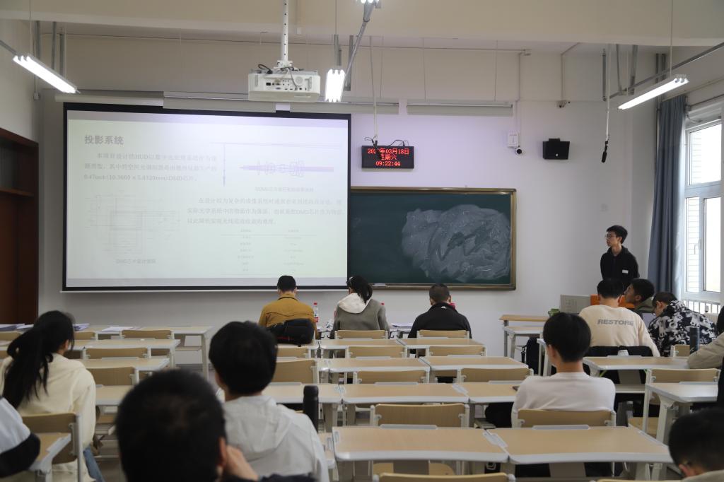答辩会场气氛热烈,各负责人讲解细致、条理清晰、答辩PPT精要简练,评委即时指出项目缺陷与改进方向,并结合各项目的特征与答辩人讨论项目潜在的创新点,客观公正地给予评价。答辩现场,项目负责人与评委讨论内容涵盖理论推导,数据模拟,创新实验等多方面,现场学术氛围浓厚。