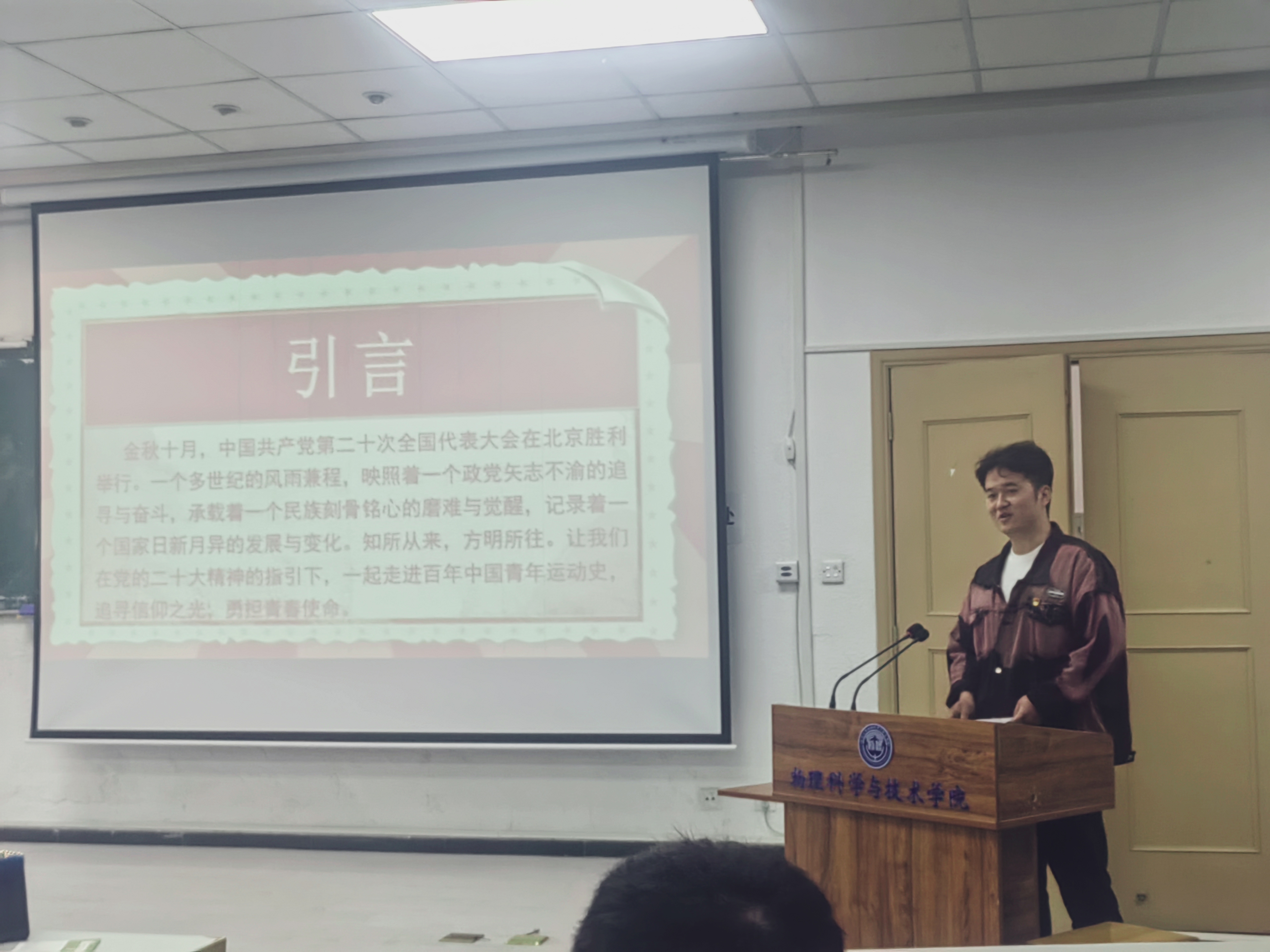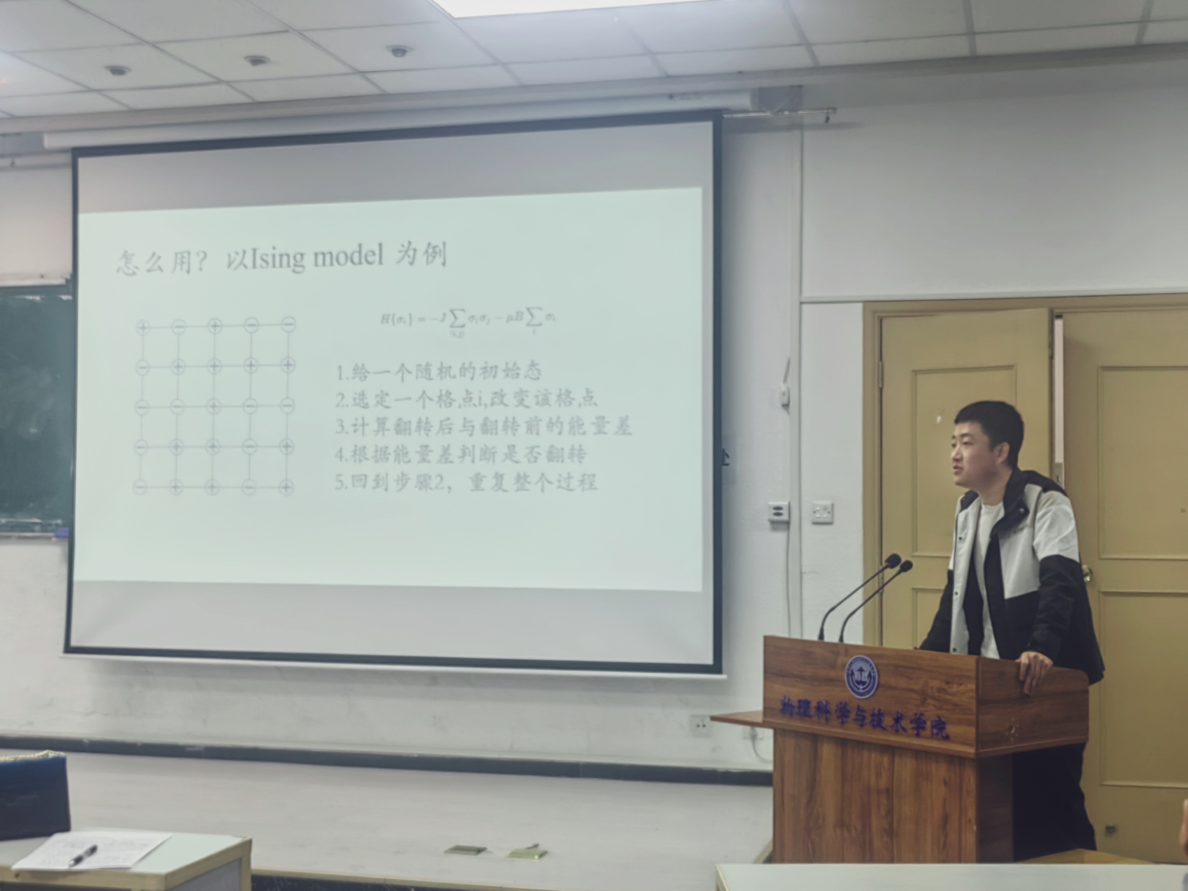 参观结束后,公司兼职辅导员陈怡带领两个支部的党员在格致楼1001召开了学习研讨座谈会。会上,公司研究生第一党支部代表董雨奇和白林立分别以《广义相对论与引力波》《蒙特卡罗方法》为题做了物理科普报告。