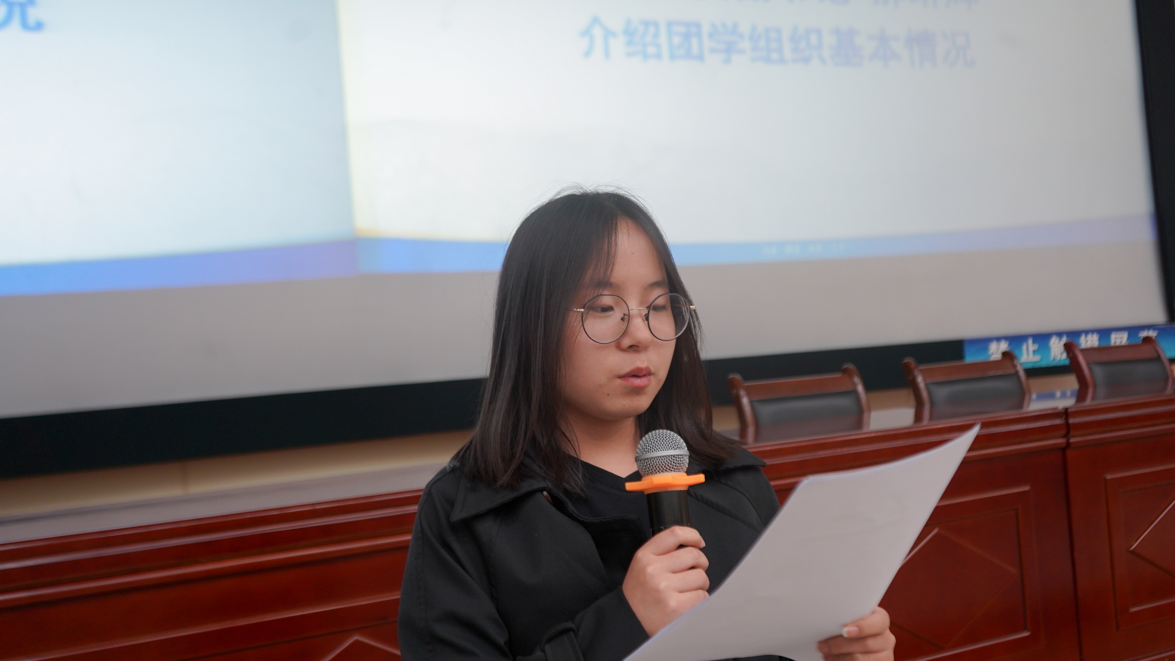 员工团委副书记郝琳辉向新生介绍团学组织基本情况,并结合自身经历分享了参与团学组织的收获及意义,使同学们对团学组织有了基本的认识。